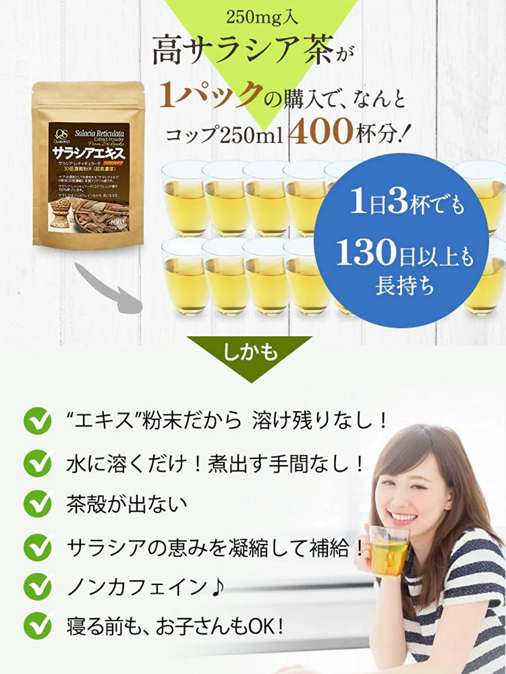 ● 濃縮エキスを粉末化。透明感のあるすっきりとしたサラシア茶に